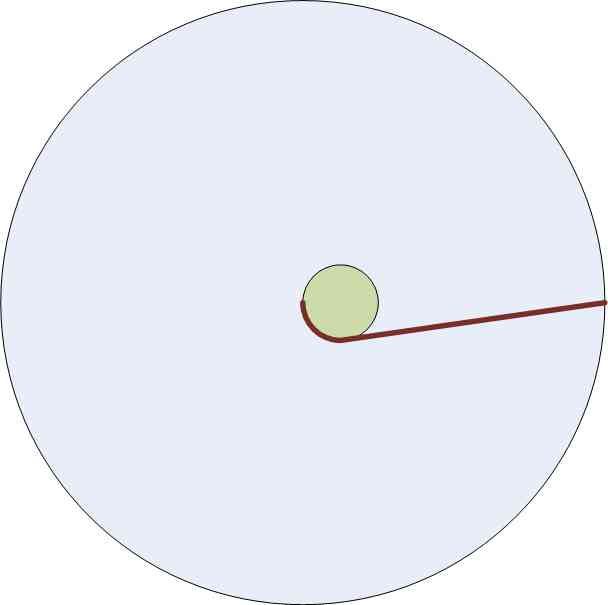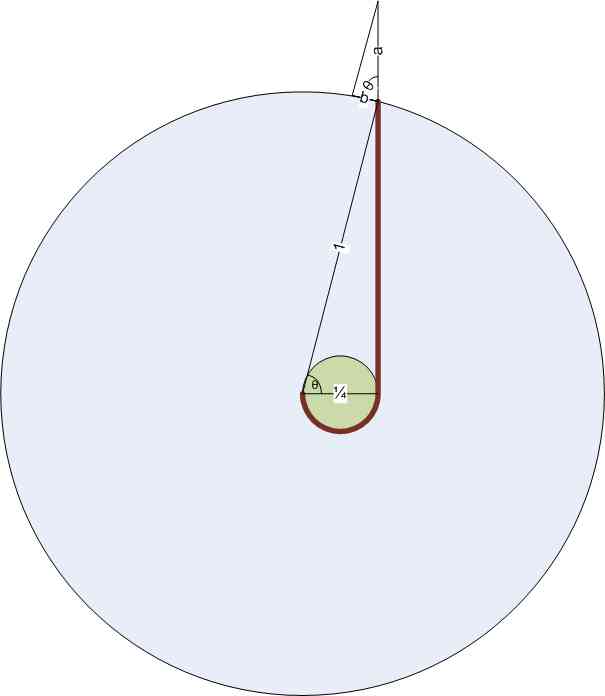 Actually, this is only the optimal path of the form: curve out 1/4 of the way, then make a straight dash. Perhaps one can do better by starting to dash sooner…