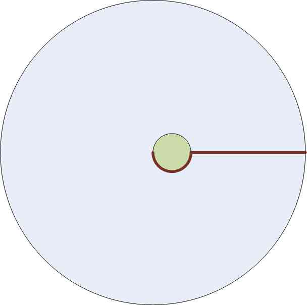 Remember that t is not only measuring time, but also the monster’s distance around the lake; the lake is radius 1, so this is also the radian measure around the lake. In other words, the initial part of the Princess’ path, in polar coordinates is: