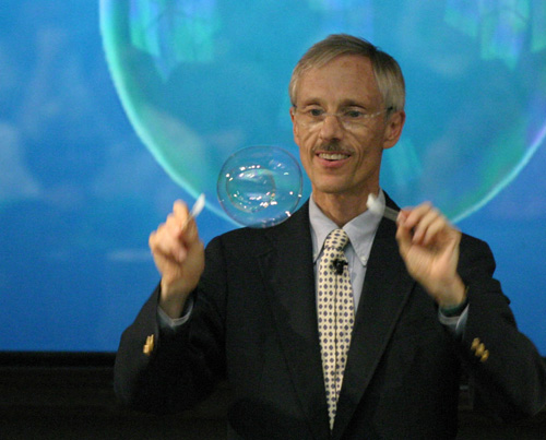 Frank Morgan of Williams College asks “What is the shape of a double bubble?”