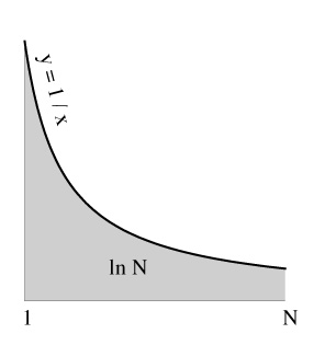 A basic fact from calculus is that the area under the curve y = 1/x, from x = 1 to x = N is exactly ln N.